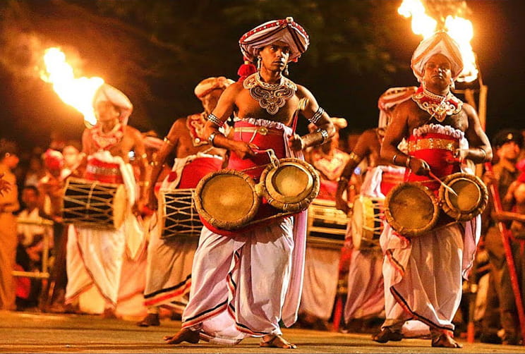 On the Esala full moon day of August each year, the sacred tooth relic of Lord Buddha, encased in a golden casket, is taken in procession, on the back of the temple elephant along the streets of Kandy for all to see. This ritual, which has been taking place for hundreds of years, is an experience of a lifetime. Scores of elephants all dressed in their finery, Kandyan chiefs in their traditional royal attire, thousands of dancers, drummers, flag bearers, and Buddhist monks, all walk in procession in honour of Lord Buddha. Thousands of people line the streets of Kandy to get a glimpse of the golden casket and to pay homage to Lord Buddha.